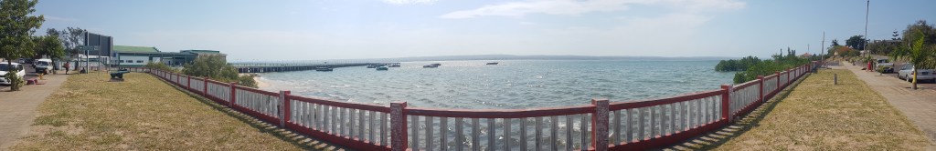 At Xai Xai (pronounced Shy Shy: – X in Portuguese is pronounced ‘sh’), we crossed the grey, greasy Limpopo, Dearly Beloved. There were no elephant children getting their trunks from crocodiles in sight, only a lone fisherman in a boat. It was quite idyllic.