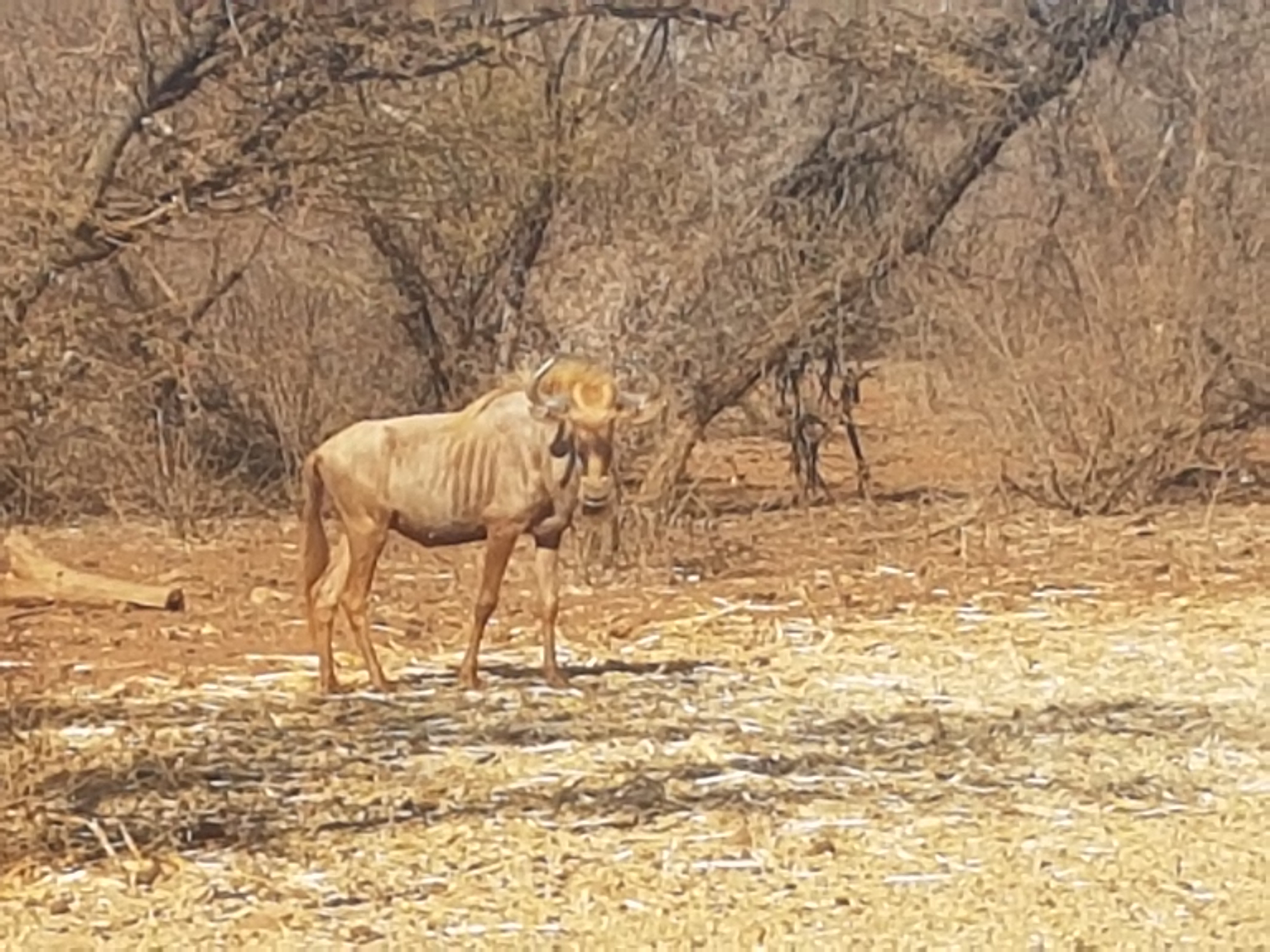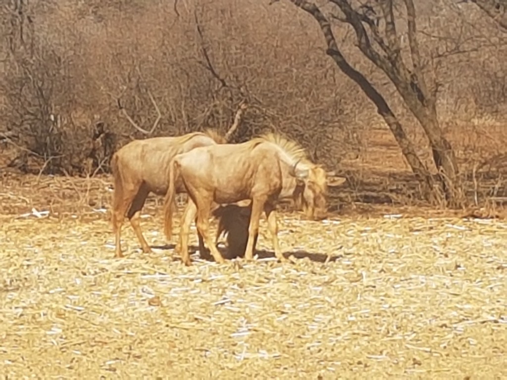 On a hot day in the middle of the Limpopo bush, I was the one who was confused – I was looking at wildebeest, but these wildebeest-like animals were strange. These wildebeest were bright, as in a bright shade of bronzy gold. My host laughed, he’d seen my type of expression often enough, and he explained that there are actually only two different species of wildebeest, or gnu as they’re also called: the common Blue Wildebeest (Connochaetes taurinus) , which is a grey/ charcoal colour, with a black tail. The second species is the more unusual Black Wildebeest (Connochaetus gnou) which is black, with a white tail.