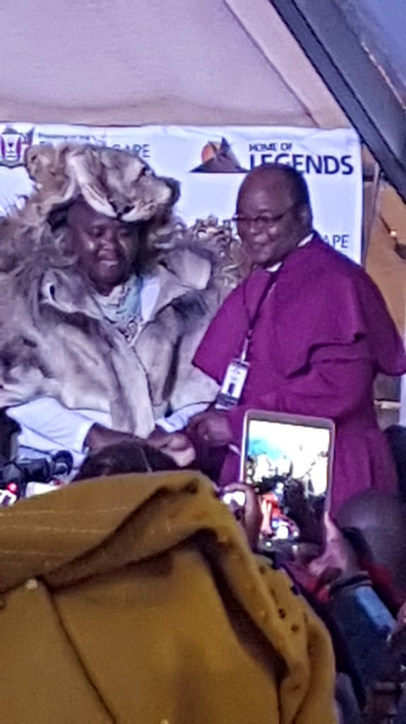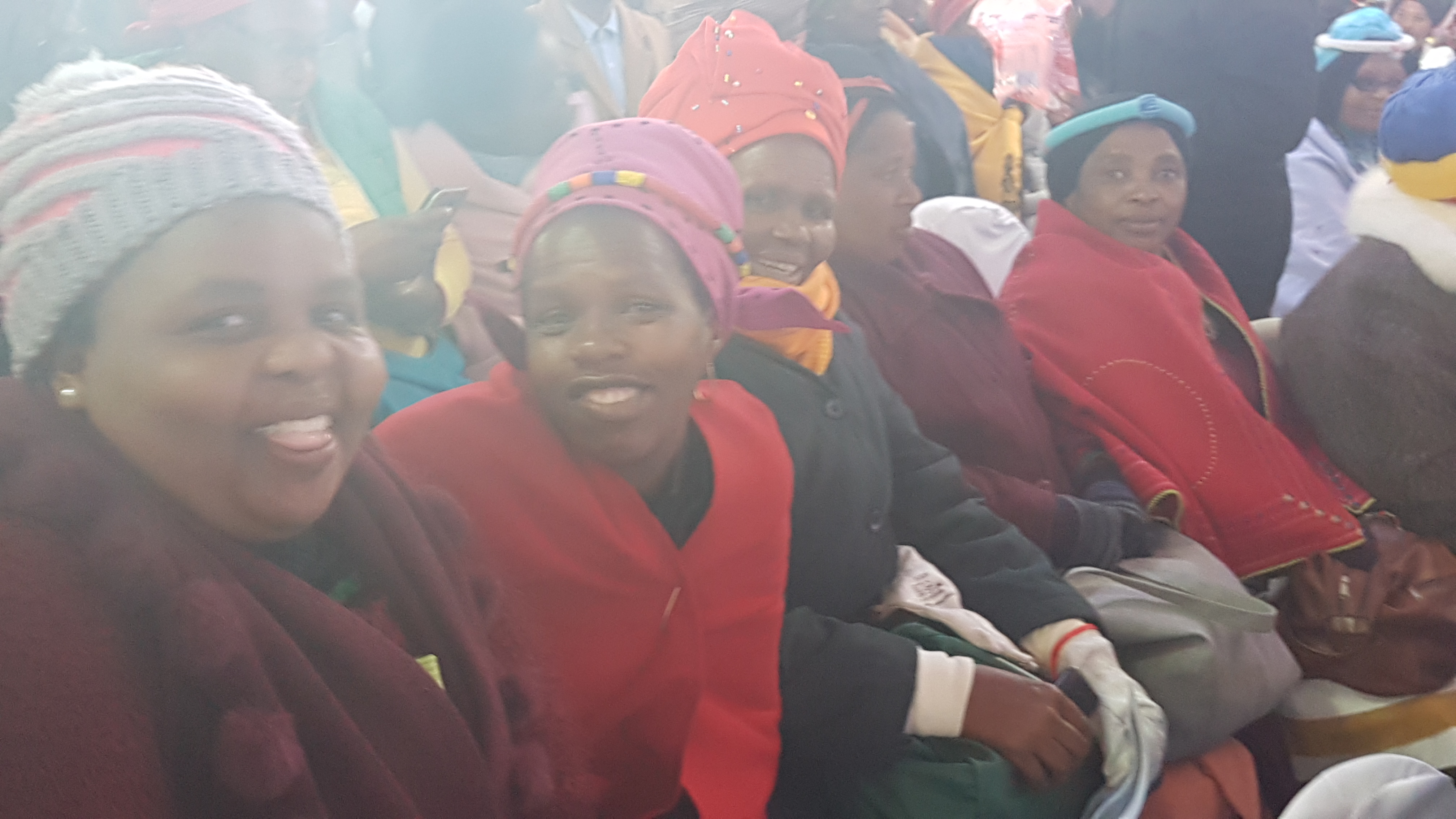 We, as media, chose seats in the fourth row, in front of the raised dais. It turned out that those seats were reserved for the Royal family, so we moved further along. The seats that were chosen for us, were also in the fourth row; we sat down as instructed. The rows behind this row was full of people from Port St Johns, who were very happy to have us in their group. They were delightful. They sang and chanted their opinions, and had to be the noisiest, happiest group in the audience of several thousand people. A bit later we were also asked to move from those seats to make room for more royal family members. We were very happy to oblige, but our new found friends, told us not to move. They had no intention of moving either, and it turned out that our seats weren’t needed after all.