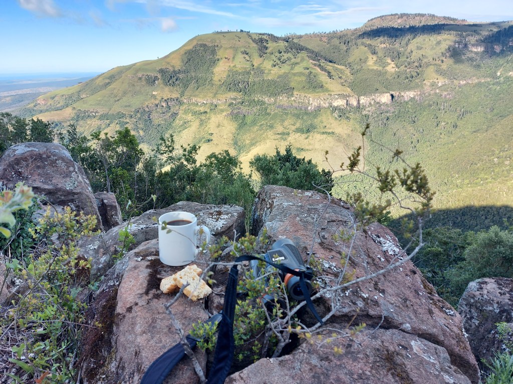 Amongst this blaze of colour, Samango monkeys (known as Sykes’ monkeys elsewhere in Africa), have loud arguments about who in the troop gets what to eat. Rare and endangered Cape Parrots (there are only 1500 left in the wild) fly overhead, adding to the monkey cacophony. Baboons are common; our hotel, The Edge, has warnings about leaving food out and doors open, which would be an open invitation to them. I don’t like baboons, and hoped that they would stay well away from me as I wandered around.