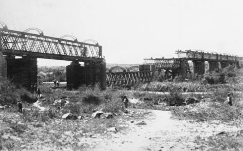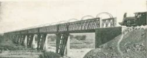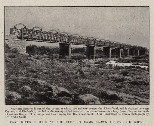The second bridge which had served as the rail bridge over the Vaal River at Fourteen Streams, near Warrenton in the Northern Cape, was dismantled and erected over the Kei River. This historic bridge at Fourteen Streams saw skirmishes during the Anglo Boer War and for a while, it became a Boer stronghold, when the English stationed there, withdrew to Kimberly. Later in 1900, the Boers retreated, and it again became part of the Cape Colony. The name is derived from the area where it crosses the Vaal – here the riverbed widens, and small islands are surrounded by what looks like many streams.