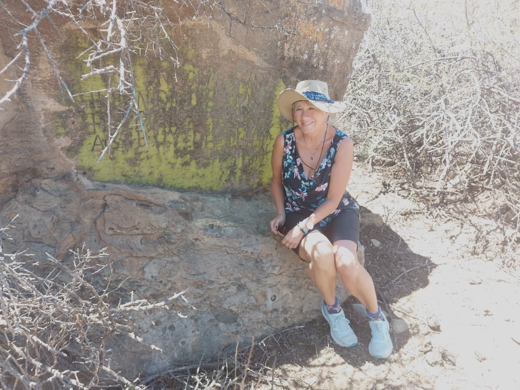 The story of ‘AGSB’, is that he, a Dane, by the name of Schomb, had travelled up from the Cape to this near desert area, and had claimed / been allocated the land as his own, engraving his claim on the boulder.
