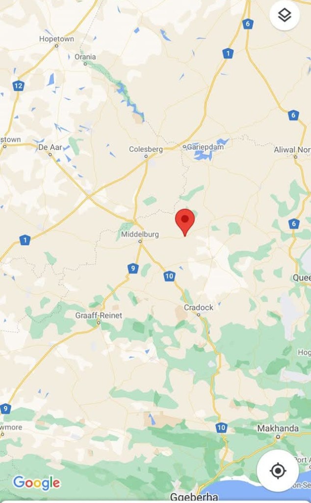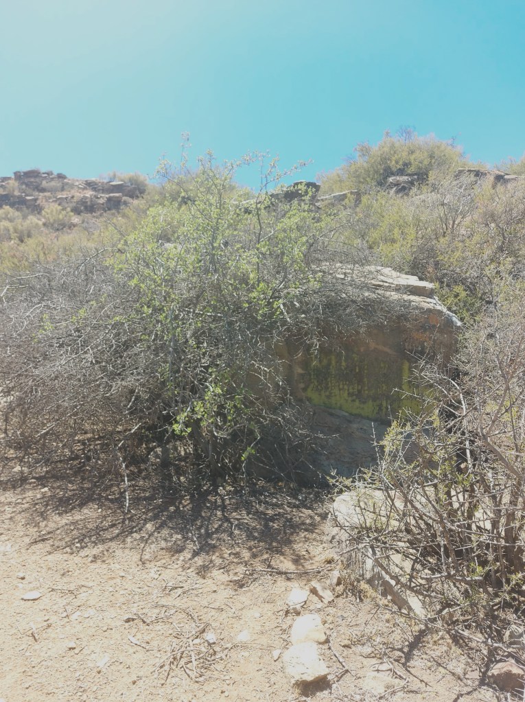 We had been invited to present our book, The Guide to Port St Johns at the Boekbedonnerd Festival held in Richmond in the Northern Cape. Being us, we stayed off the highways and took the longer narrower roads, and saw a lot more of the Karoo than most people do. We had overnighted in Middelburg, and I had enquired at the local tourism office where this rock was. They had no idea, but I could try calling the local family of the same surname. I did. No luck, yes, she had heard the story, but no, now the family seat was a few miles away, in the hamlet named for the family, and the carved rock was not there. She gave me another name and number to call, and that person also had a vague recollection of the story, but was clueless, but suggested as a possibility, to try going down a particular farm road, and ask the farmers there. So here we were, driving through miles and miles of Karoo farmland. Elsa had a few days earlier decided that her real vocation in life was that of a rally driver, and drove accordingly, with me beside her pretending to see lots of rocks that she had to slow down for.