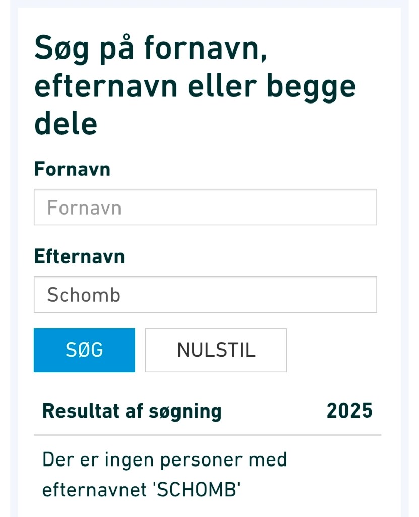 In Denmark, the name Schomb has died out; genealogical name searches have resulted in finding no-one by that name.